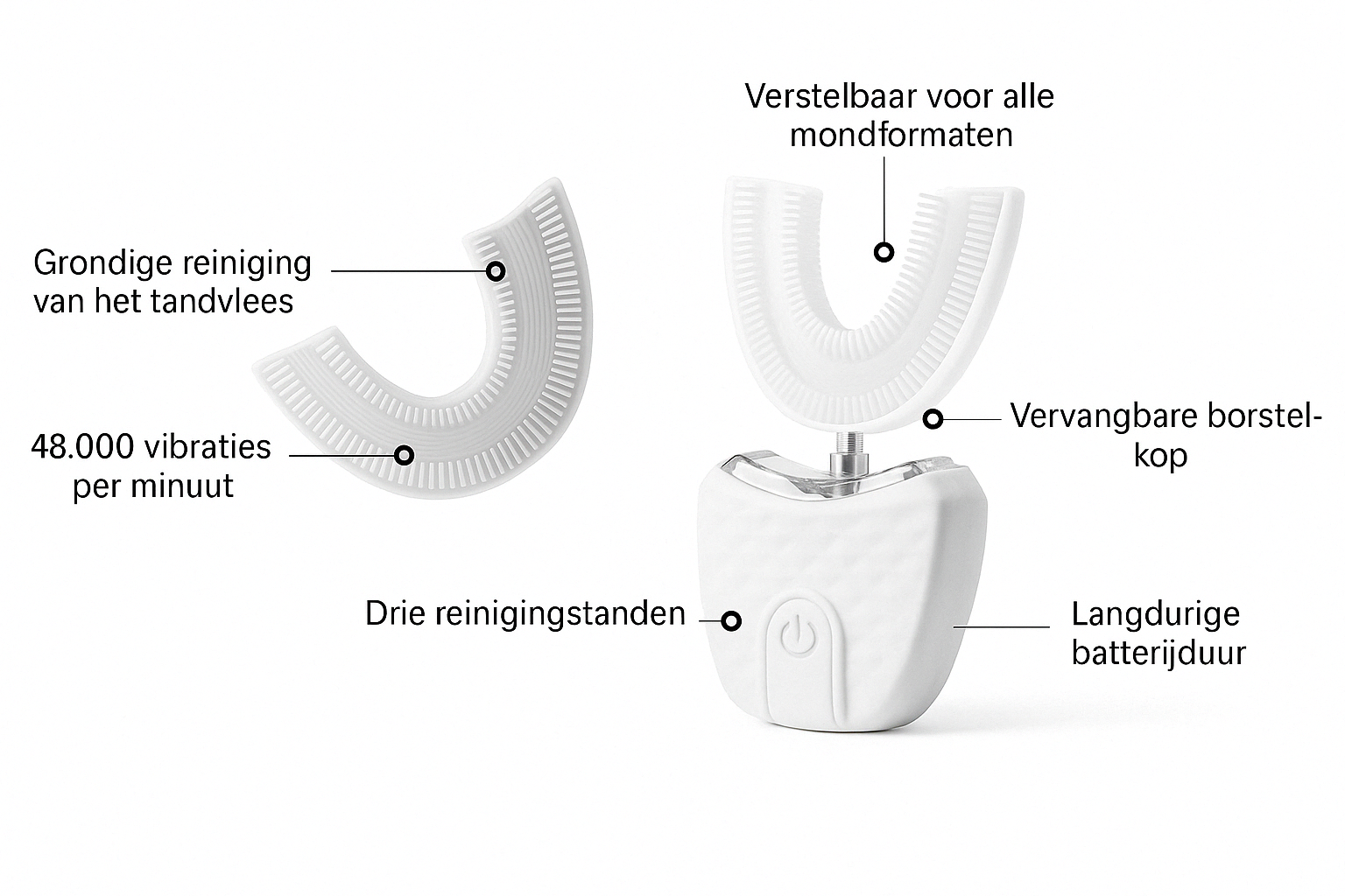 Onze SoftSmile-tandenborstel is een volledig automatische oplossing van 30 seconden die elke tand diep reinigt, zachtjes witter maakt met koud licht en tegelijkertijd je tandvlees verzorgt — voor een schonere, frissere glimlach zonder enige moeite.